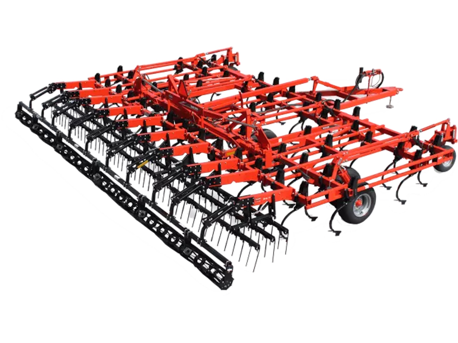The KUHN Krause 5635 field cultivator, with its 5 rows of shanks, provides the residue flow necessary to work in today's high-yielding cash crop conditions, while shanks on true 6" spacing and split-the-middle shank pattern ensure that volunteer weeds are removed across the entire width of the machine. Features such as the exclusive floating hitch design and positive stop depth control ensure working depth remains consistent for even germination and uniform emergence.