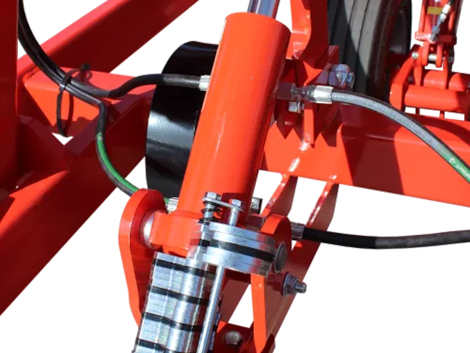 The KUHN Krause floating hitch features up to 57% fewer wear points than conventional designs. Fewer moving parts mean less chance for a breakdown during the critical seedbed preparation season. In field position, the 5635 contours over rolling ground conditions, then transforms to a rigid, self-leveling style when raised to transport position. The floating hitch system raises the gauge wheels off the ground during transport. This provides greater machine stability and control as compared to conventional floating hitch designs. Conventional designs generally produce “caster wobble” and may become unstable during transport, especially at high speeds.