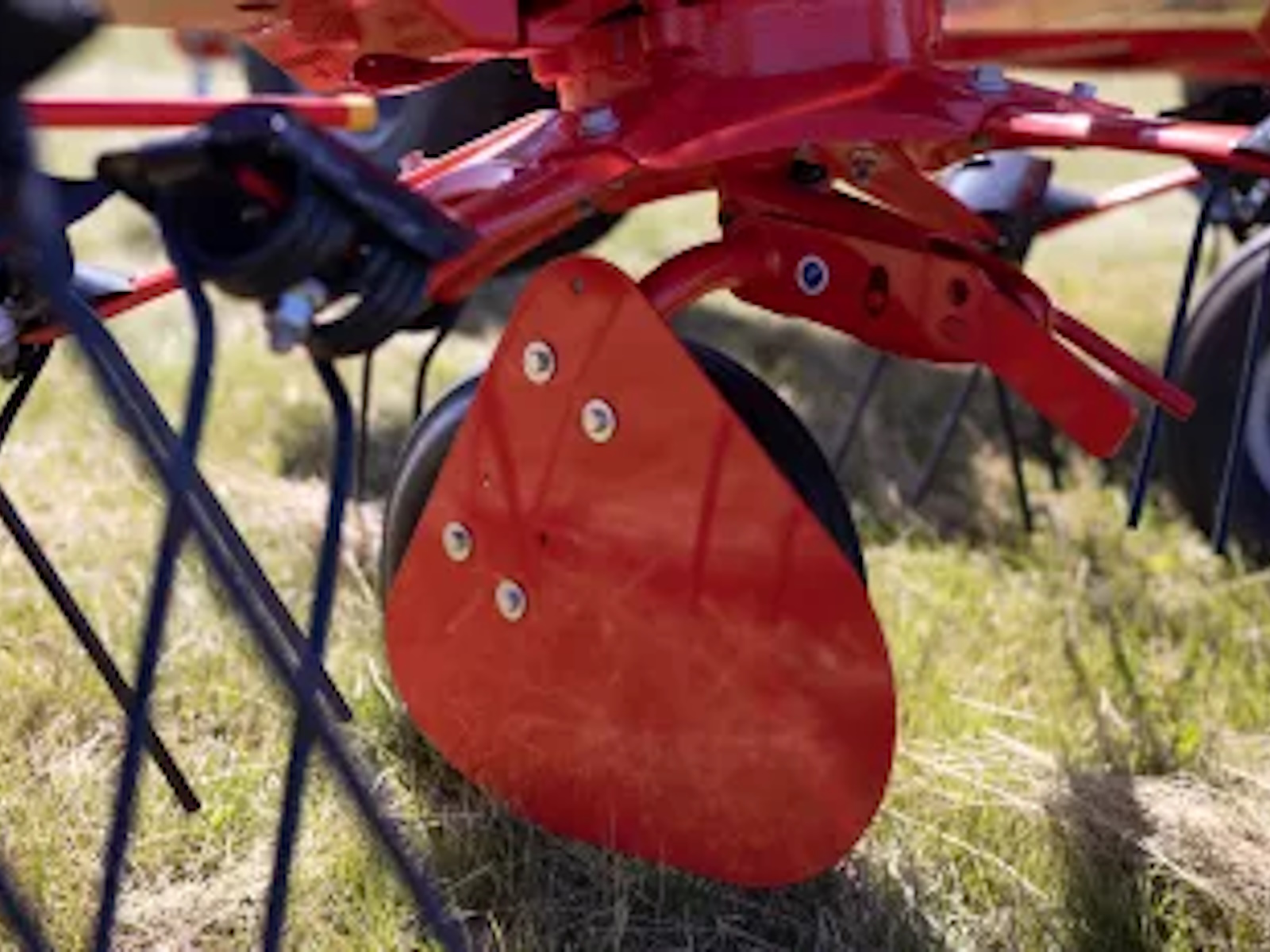 Operating in short, sticky crops or long, late season crops can be a challenge when the crop wraps in the wheel column, resulting in frustrating downtime spent clearing the mess. These tedders are fitted with crop deflectors as standard.