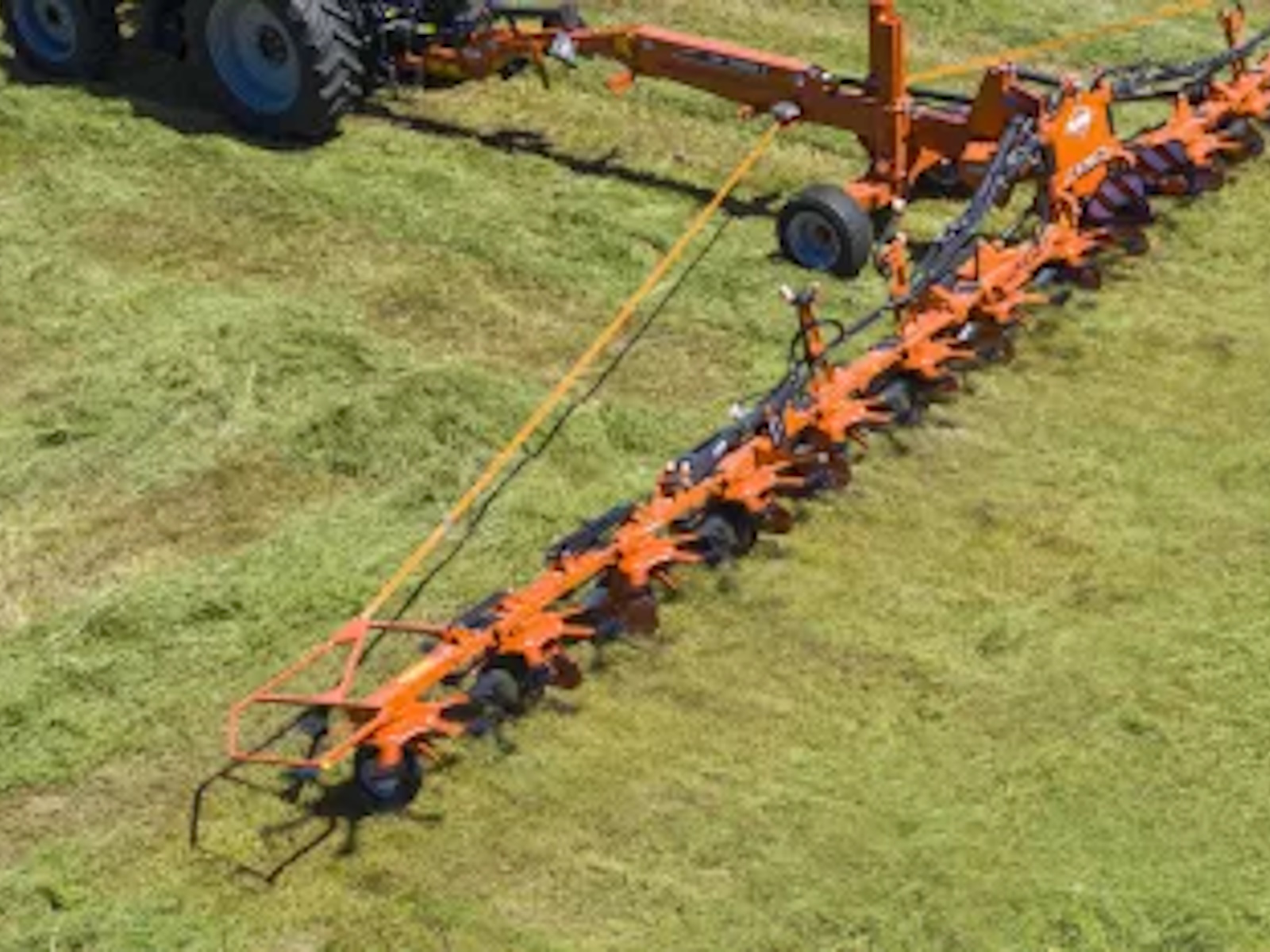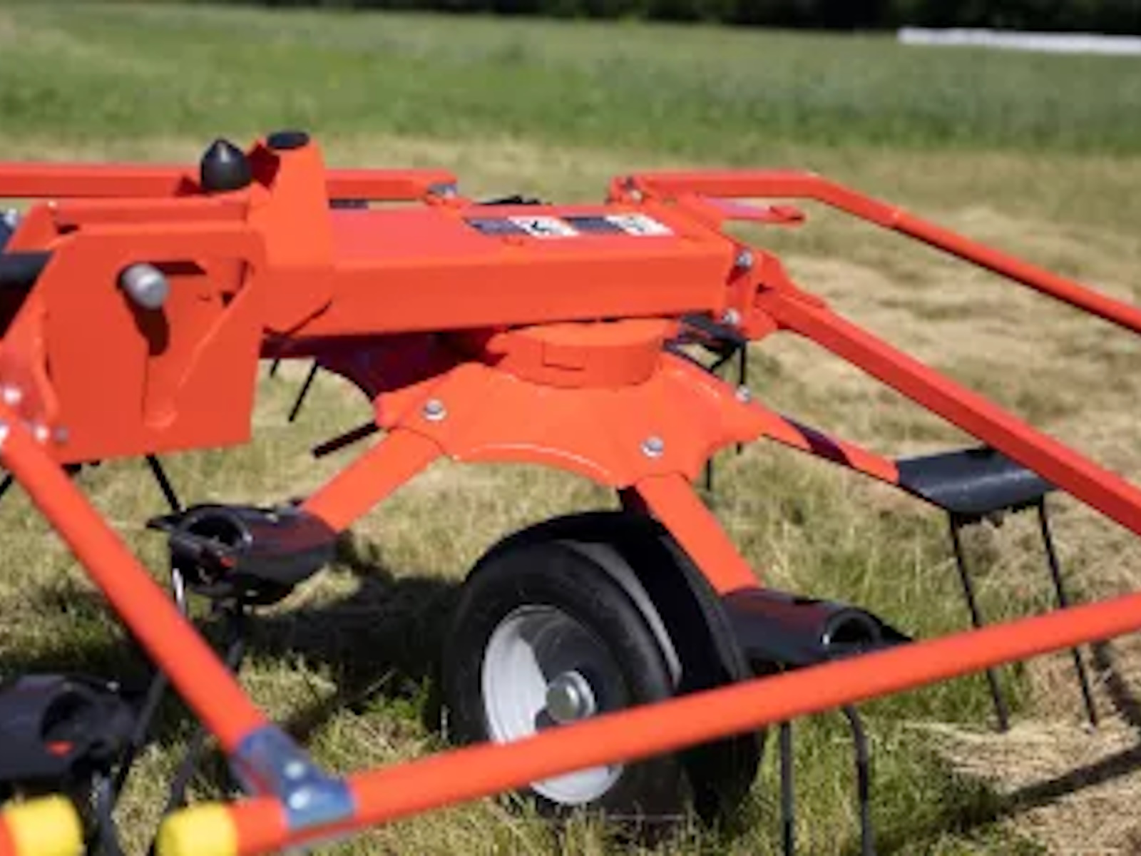 These machines have excellent ground following with their small rotors that are under 5’ in diameter, which allows for uniform tedding across the whole field. There is individual articulation between each rotor and equal spacing between the rotors and tires for better ground following.