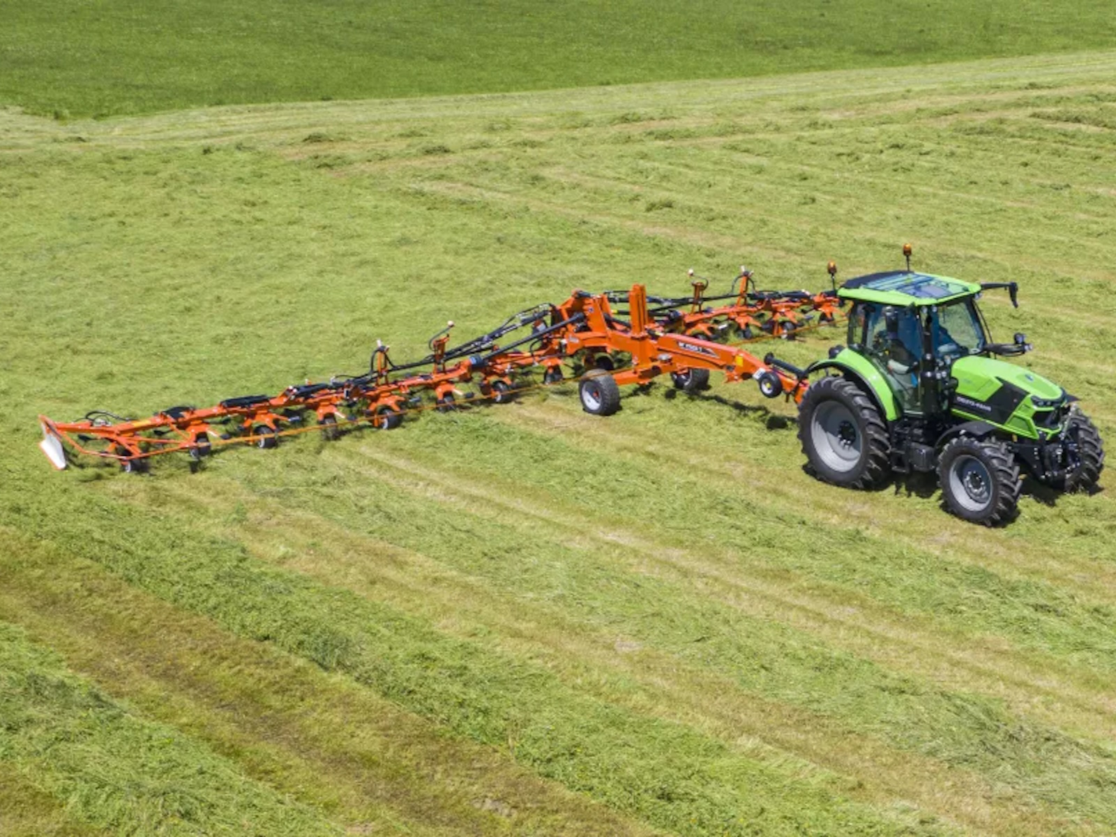 OptiTedd rotors offer a steep angle of attack for complete crop inversion and fast, uniform drying. The improved rotor design increases robustness and ensures effective tedding in all conditions. Small-diameter rotors, available on GF 7903 T/8703 T/10803 T/17003 T models, feature a minimum distance to the center of gravity to reduce lift and horsepower requirements. Large-diameter rotors, featured on the GF 7803 T/7803 THA, excel at spreading long, dense crops.