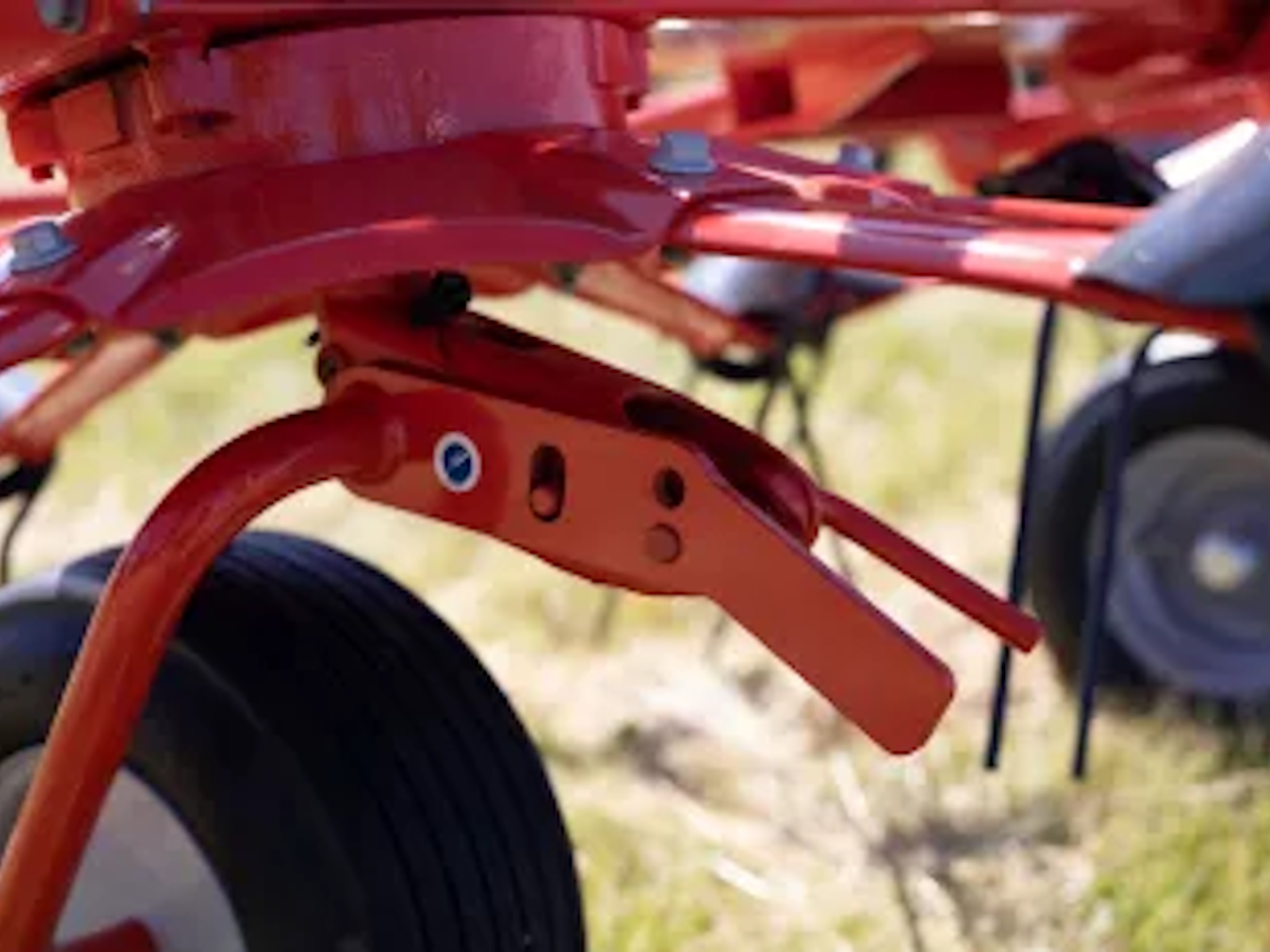 Whether in long or short, wet or dry crop, or different cutting heights, the pitch angle is adjusted without tools near the wheel supports. Always remember a steep pitch angle will decrease drying time and increase the nutritional value of the forage.