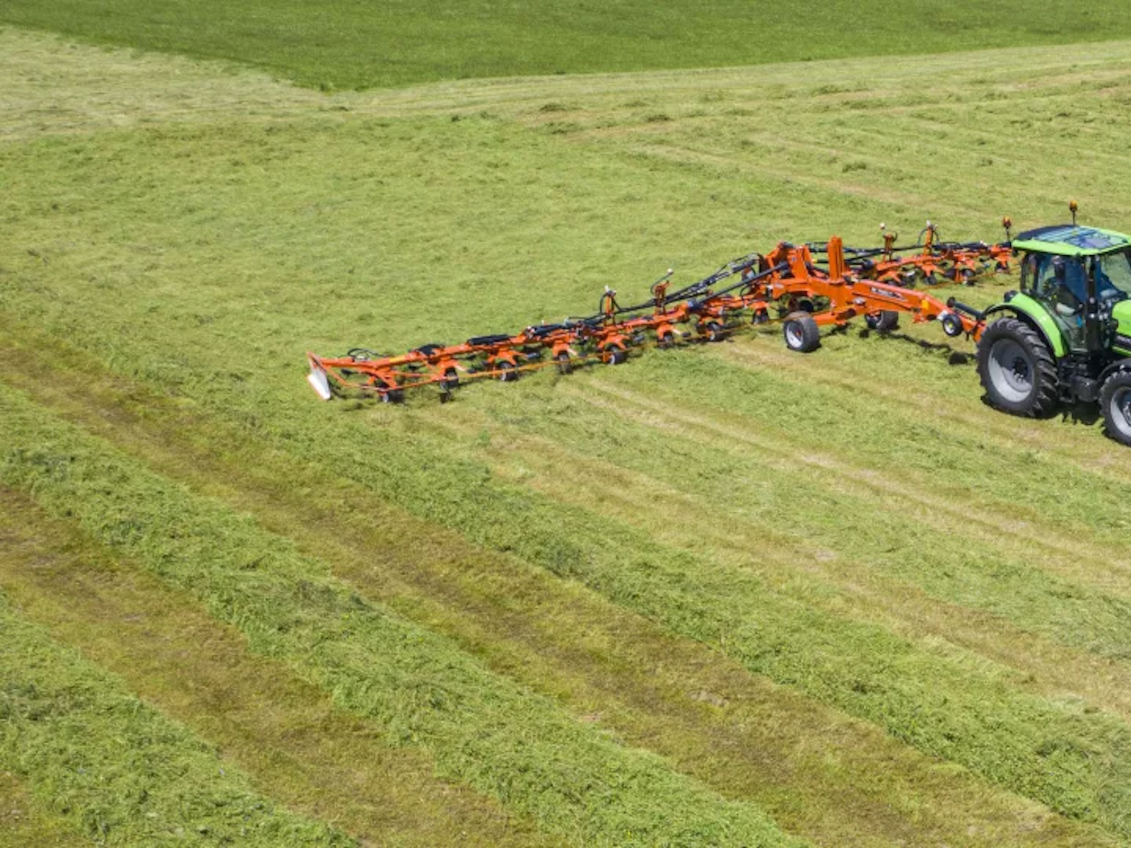 The new OptiTedd rotors are the secret to rapid drying, excellent ground following and low incorporation of impurities in the crop, helping maintain maximum forage quality. These machines feature KUHN’s Headland Lift Control system, making them easy to lift and maneuver on headlands, while limiting the introduction of foreign materials like dust into the forage. Each of the rotor gearboxes are sealed, lubed-for-life and driven by KUHN’s patented DigiDrive® system, reducing maintenance. Despite the wide dimensions at work, these machines are incredibly compact in transport.