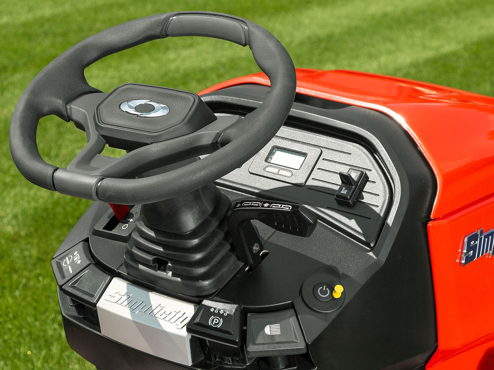 Everything you need is right on the dash. Whether it's the clock, hour monitor, height-of-cut adjustment, or the push button start, you will be able to operate your tractor with ease. - ELECTRIC HEIGHT-OF-CUT