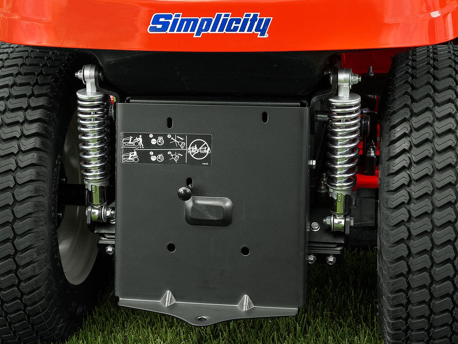 Simplicity's fabricated mower deck allows the mower to follow the contours of your lawn giving a scalp-free cut. The full-width rear rollers provide a smooth finish allowing you to create ballpark lawn stripes and be the envy of the neighborhood. - SUSPENSION COMFORT SYSTEM™