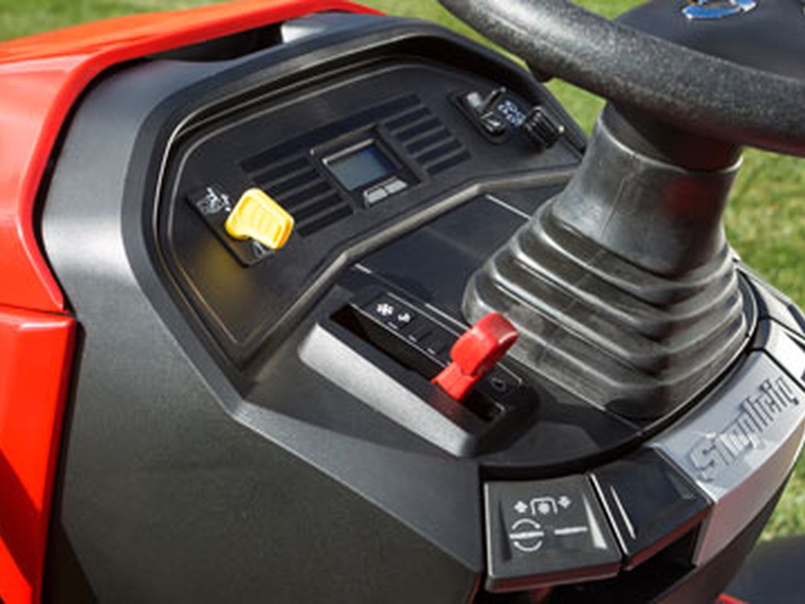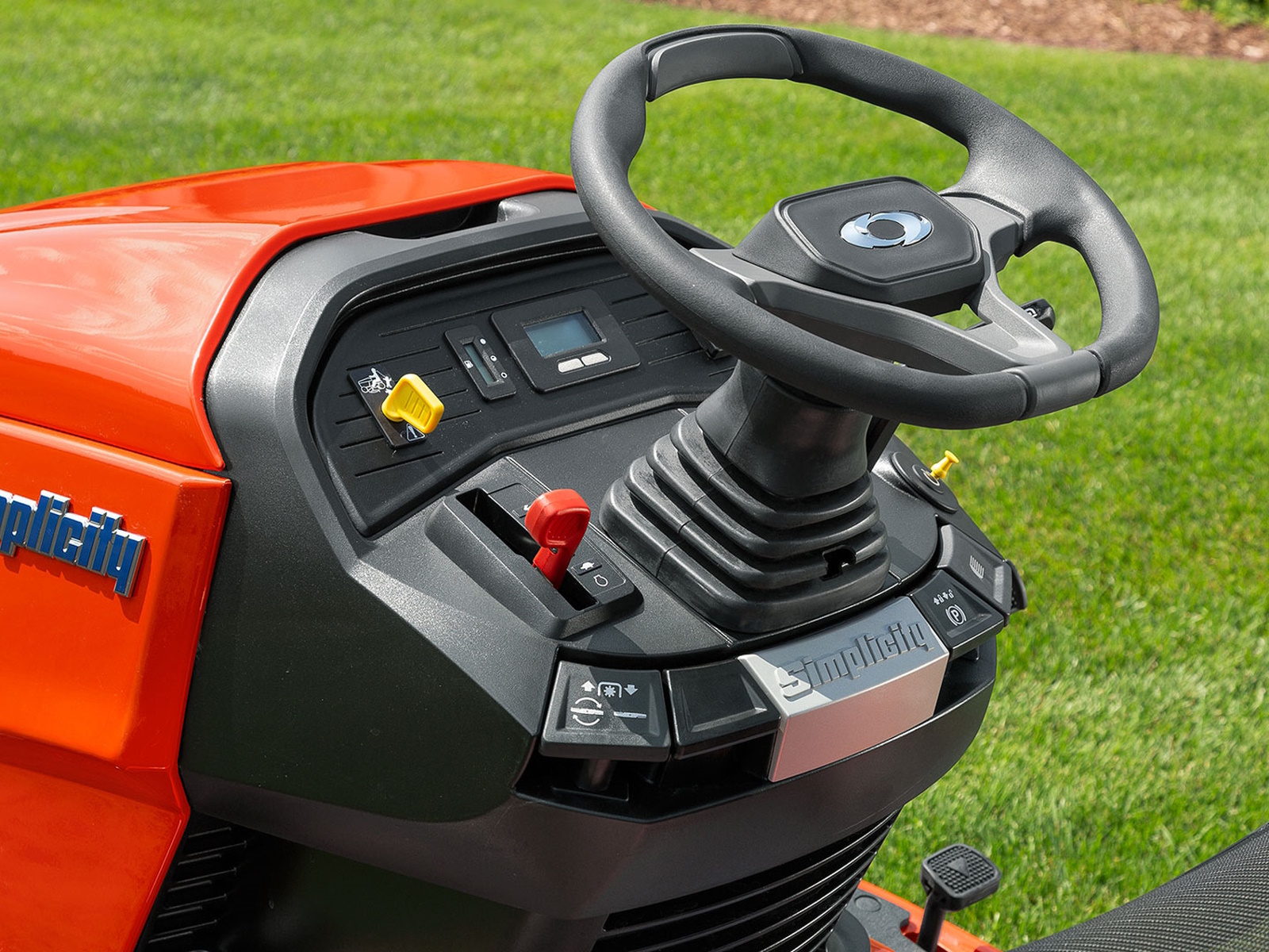 The exclusive rear Suspension Comfort System™ (SCS) reduces the impact felt at faster mowing speeds. Plus, an ergonomic mesh seat keeps you cool and comfortable. - DELUXE TRACTOR CONTROL PANEL